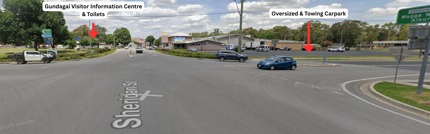 The Council carpark next to the Gundagai Visitor Information Centre is centrally located and convenient for a quick stop, however: